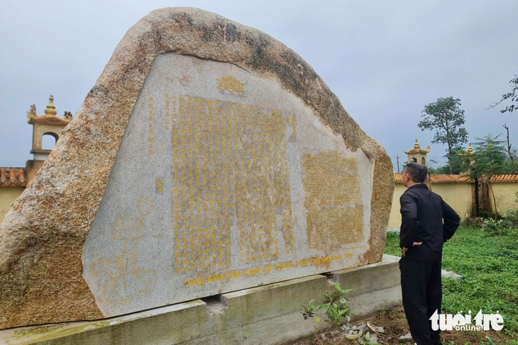 Tấm bia đá được đặt trong khuôn viên đền thờ vua Hàm Nghi và các tướng sĩ Cần Vương - Ảnh: HOÀNG TÁO