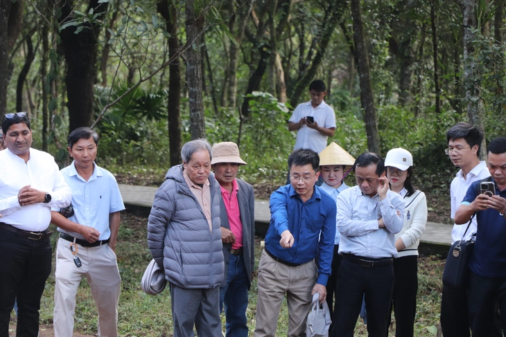 Các nhà khoa học tìm hiểu con đường thần đạo mới phát hiện được ở Mỹ Sơn - Ảnh: B.D.