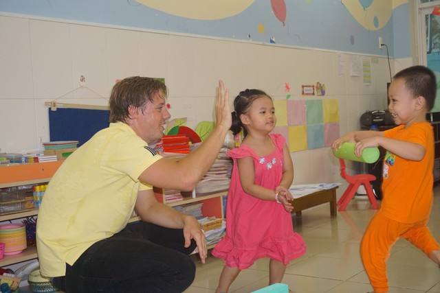 Sinh viên Đan Mạch đến thực tập tại một trường mầm non trên địa bàn TP.HCM - Ảnh: H.HG.