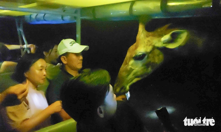 Khách quốc tế tự tay đưa thức ăn cho hươu cao cổ - Ảnh: CHÍ CÔNG