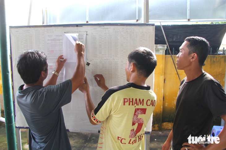 Người dân vùng lũ xã Phước Dinh (tỉnh Khánh Hòa) theo dõi bản thông báo về đất đai - Ảnh: ĐỨC CƯỜNG