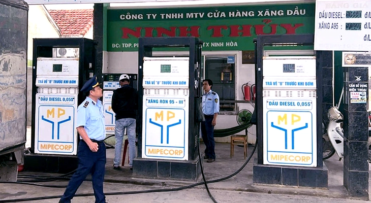 Lực lượng quản lý thị trường Khánh Hòa kiểm tra hoạt động kinh doanh xăng dầu tại các cửa hàng - Ảnh: Đội Quản lý thị trường số 2
