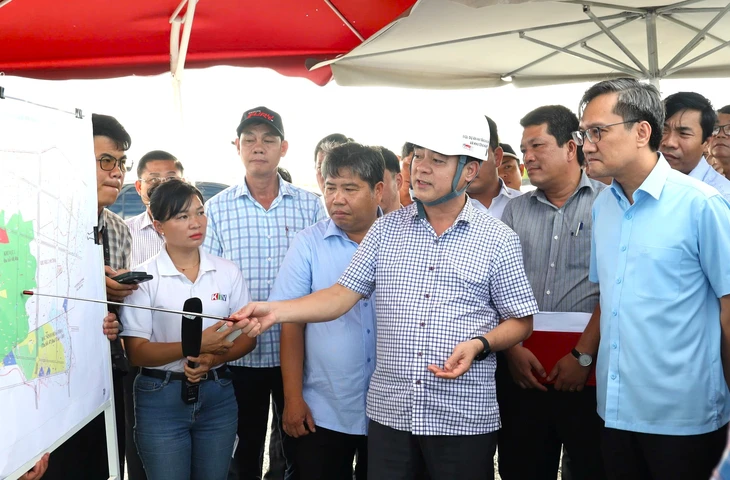 Bí thư Tỉnh ủy Khánh Hòa Nghiêm Xuân Thành kiểm tra tiến độ giải phóng mặt bằng các dự án trên địa bàn tỉnh - Ảnh: HẢI PHÚ