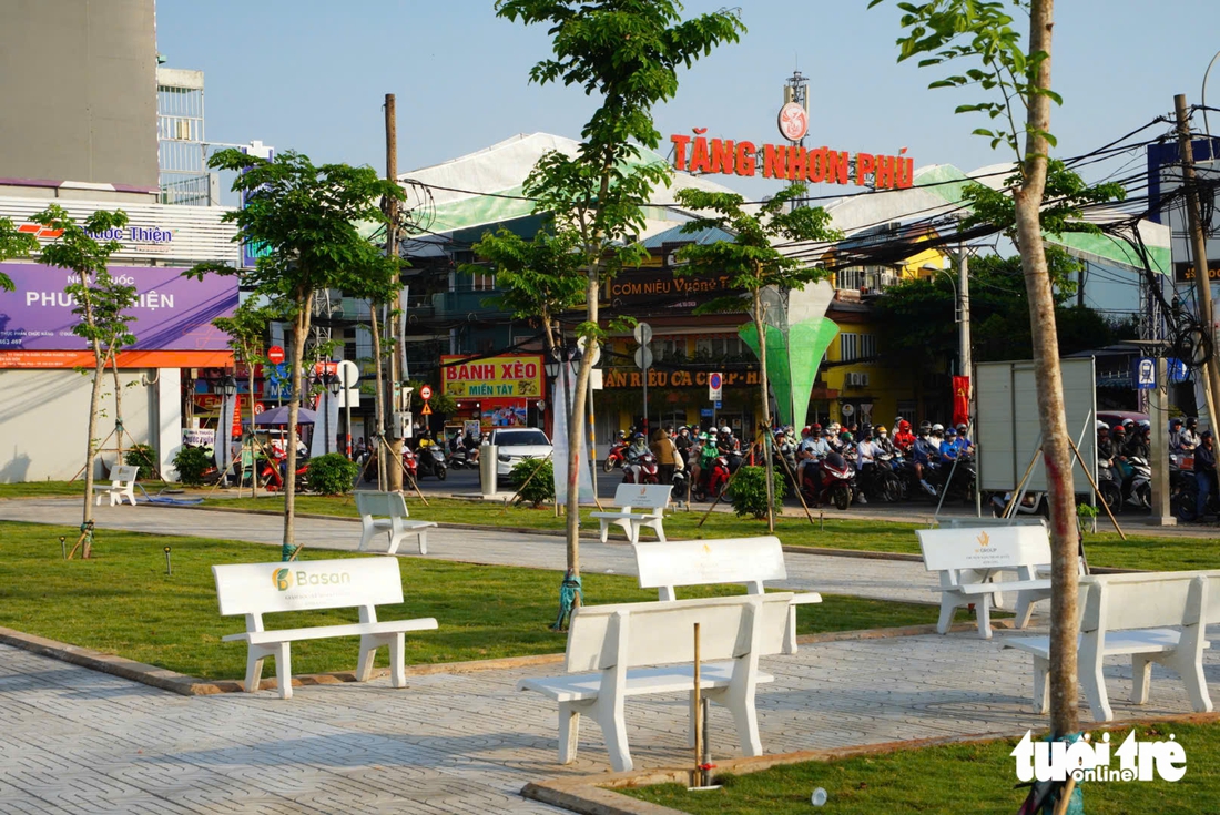 Công viên nằm ngay khu vực đầu đường Lê Văn Việt, phía trước cổng chào phường Tăng Nhơn Phú - Ảnh: HỮU DUY