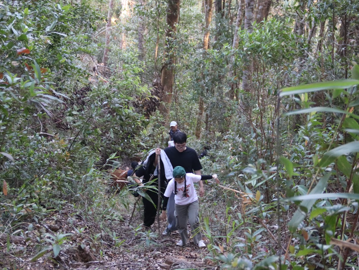 Đi bộ xuyên qua cánh rừng tại xã Đak Sơmei - Ảnh: Kim Thoa