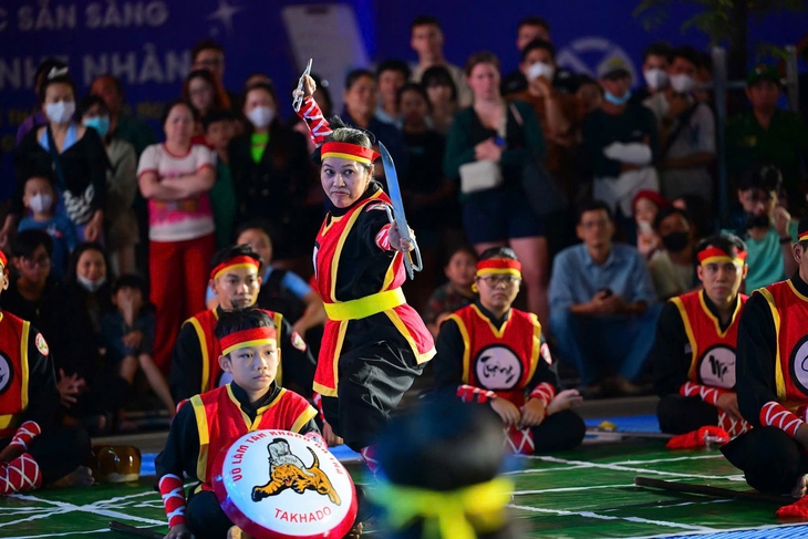 Khí thế xung trận của các "quân cờ người" khi biểu diễn - Ảnh: ANH HÀO