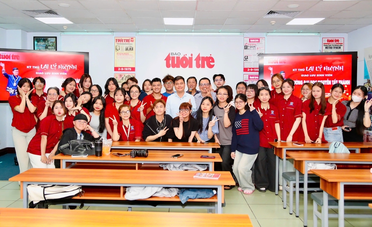 Ngoài giao lưu, kỳ thủ Lại Lý Huynh còn truyền cảm hứng cho các bạn sinh viên Trường đại học Nguyễn Tất Thành tại tòa soạn báo Tuổi Trẻ - Ảnh: NGUYÊN KHÔI