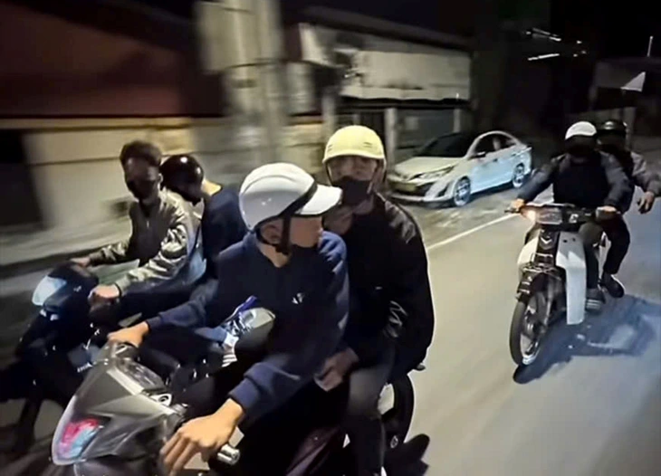 Nhóm thanh thiếu niên chạy xe máy lạng lách gây mất trật tự cùng nhiều vi phạm luật giao thông, còn livestream trên mạng xã hội - Ảnh: T.G.