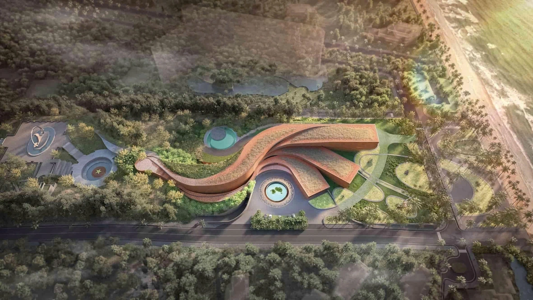 Phối cảnh kiến trúc Bảo tàng Trường Sa với 3 nhánh vươn mình ra Biển Đông - Ảnh: Huni Architectes
