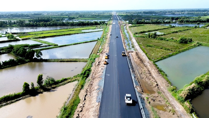 Tuyến cao tốc Cần Thơ - Cà Mau đang hoàn thiện để kịp tiến độ cho ngày thông xe kỹ thuật - Ảnh: THANH HUYỀN