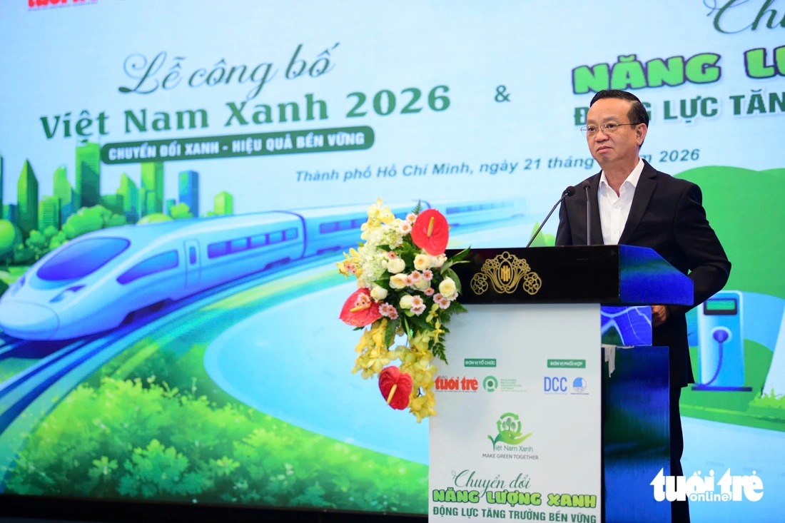 Phát biểu khai mạc hội thảo "Chuyển đổi năng lượng xanh - Động lực tăng trưởng bền vững", nhà báo Trần Xuân Toàn - Phó tổng biên tập báo Tuổi Trẻ - cho biết sự kiện do báo Tuổi Trẻ phối hợp Bộ Nông nghiệp và Môi trường và các đối tác tổ chức, là hoạt động mở đầu cho dự án "Việt Nam Xanh 2026".