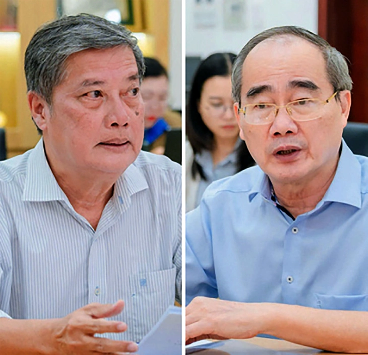 Ông Nguyễn Văn Đua và ông Nguyễn Thiện Nhân gợi mở nhiều vấn đề khi góp ý dự thảo văn kiện Đại hội Đoàn TP.HCM lần I - Ảnh: K.ANH