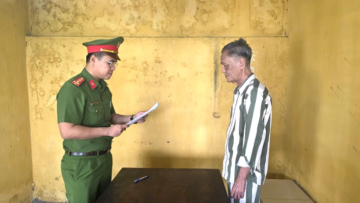 Cơ quan điều tra tống đạt quyết định đối với bị can Lê Thanh Châu - Ảnh: H.B.