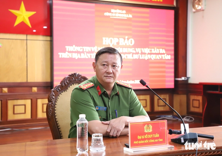 Đại tá Võ Duy Tuấn - Phó giám đốc Công an tỉnh Đắk Lắk, Thủ trưởng Cơ quan cảnh sát điều tra - chủ trì buổi họp báo vụ tai nạn giao thông khiến nam sinh lớp 12 tử vong - Ảnh: TRUNG TÂN