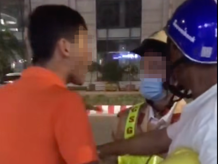 Nguyễn Cao Quý (áo cam) cản trở quá trình thực thi công vụ của cảnh sát - Ảnh: D.A.