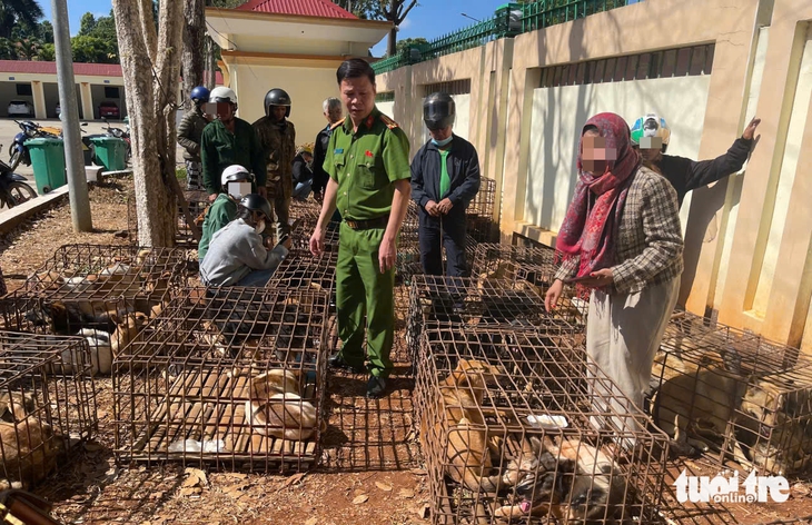 Công an xã Quảng Phú phát hiện 70 con chó còn sống tại nhà của Phạm Tuấn Giang - Ảnh: SỸ ĐỨC