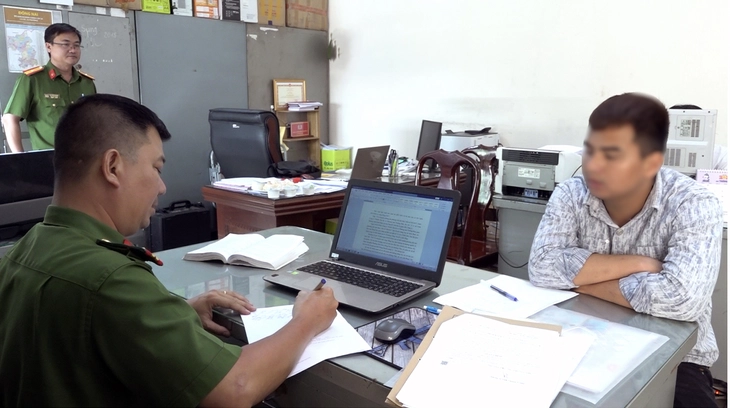 Cơ quan cảnh sát điều tra làm việc với Phạm Thanh Bình - người lái sà lan đụng cầu Ghềnh khiến giao thông đường sắt Bắc - Nam tắc nghẽn - Ảnh: Công an cung cấp