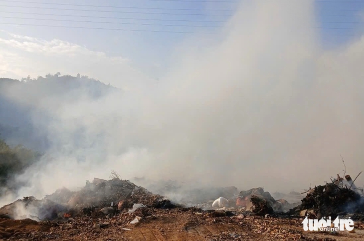 Khói từ bãi rác bao phủ trên diện rộng - Ảnh: MINH PHƯƠNG