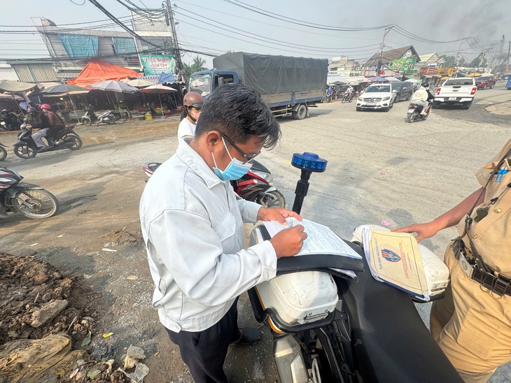 Cảnh sát giao thông lập biên bản đại diện chủ đầu tư dự án - Ảnh: PC08