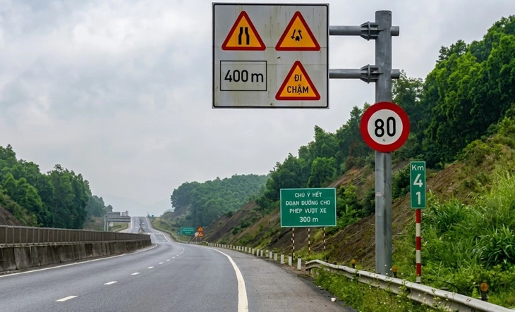 Cao tốc Cam Lộ - La Sơn được cắm biển báo tốc độ tối đa 80km/h trở lại trên những đoạn đường chưa thi công mở rộng - Ảnh: Khu Quản lý đường bộ II