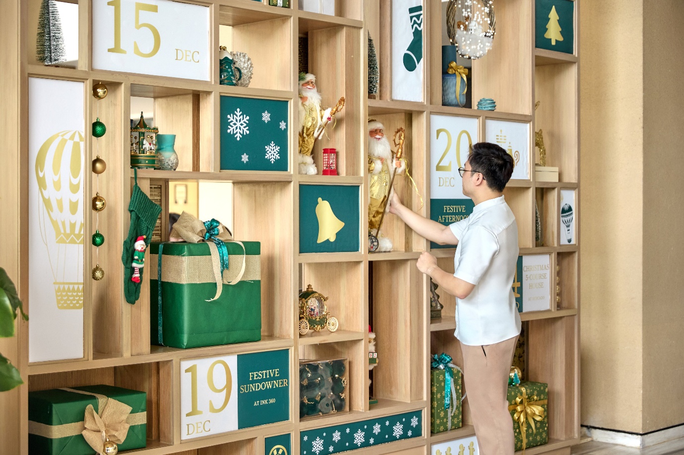 Khu nghỉ mở màn mùa lễ hội bằng lễ thắp sáng cây thông trong sảnh chính. Cây thông được trang trí theo phong cách biển với san hô, vỏ sò và tông vàng ánh kim, tạo nên không gian ấm cúng, gợi nhớ đến vẻ đẹp tự nhiên của đảo ngọc.