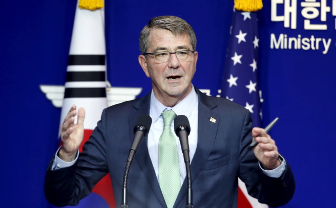 | Bộ trưởng Quốc phòng Mỹ Ashton Carter khẳng định Mỹ sẽ tiếp tục tuần tra trên Biển Đông - Ảnh: Reuters |