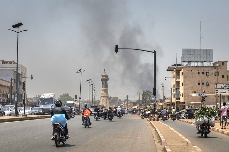 Cột khói đen bốc lên tại Bamako, Mali ngày 26-4 - Ảnh: AFP