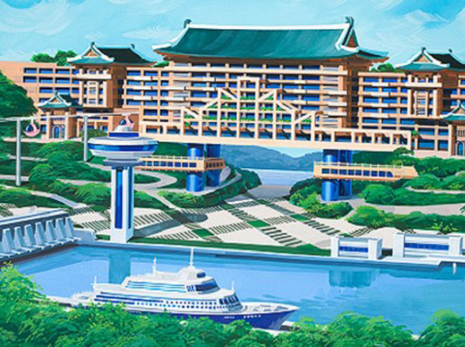 | Phối cảnh một khách sạn ở bờ biển phía tây Triều Tiên, tại thành phố cảng Nampo, hiện không có công trình lớn nào - Ảnh: Kyoro Tours |