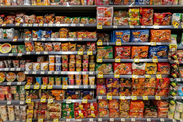 Quầy mì ăn liền tại một siêu thị ở Bangkok, Thái Lan - Ảnh: AFP