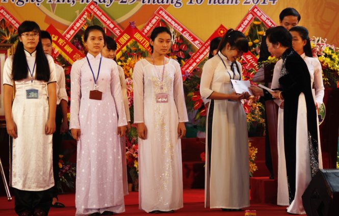 | Phó chủ tịch nước Nguyễn Thị Doan trao học bổng cho các sinh viên giỏi có hoàn cảnh khó khăn - Ảnh: V.Đồng |