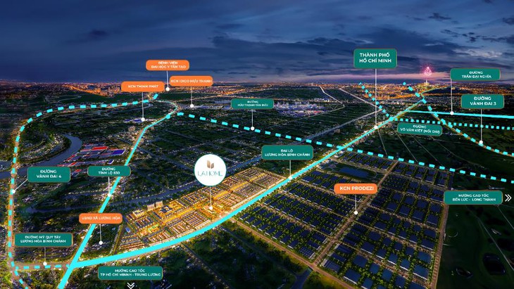 Nằm ngay mặt tiền đại lộ Lương Hòa - Bình Chánh, khu đô thị LA Home quy mô 100 ha là một trong những dự án hưởng lợi trực tiếp từ làn sóng hạ tầng này.