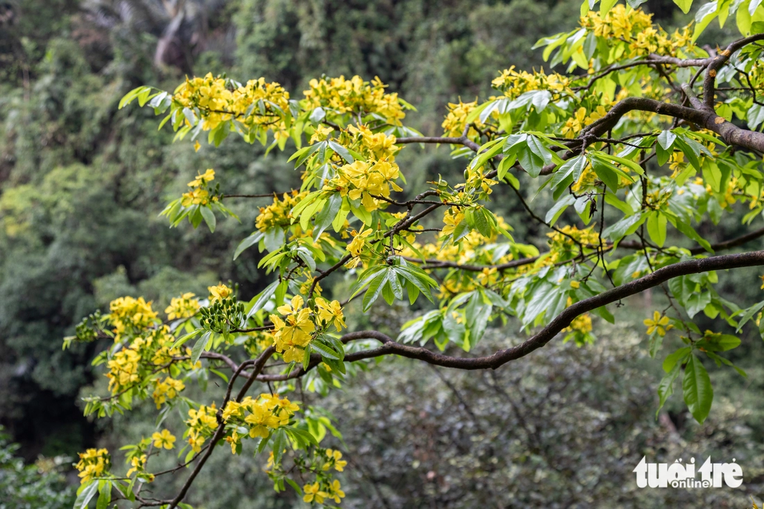 Hoa đặc trưng 5 cánh, màu vàng tươi, nở rực giữa tán rừng già.