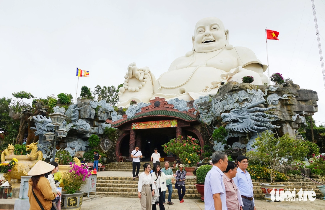 Khách du lịch đến tham quan núi Cấm (xã Núi Cấm, An Giang) - nới có tượng Phật Di Lặc trên núi lớn nhất Việt Nam - Ảnh: CHÍ CÔNG
