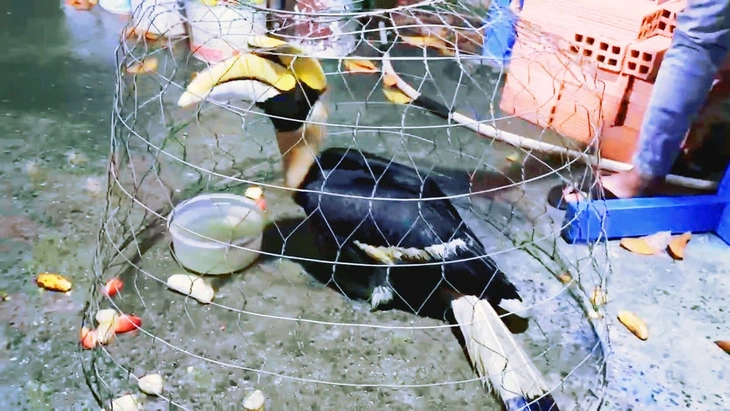 Con chim hồng hoàng mà ông Phạm Văn Tính (ngụ xã Xuân Thới Sơn, TP.HCM) bắt được vào tối 24-12. Ông Tính cho biết đã liên hệ giao con chim trên cho cơ quan chức năng - Ảnh cắt clip do người dân ghi lại