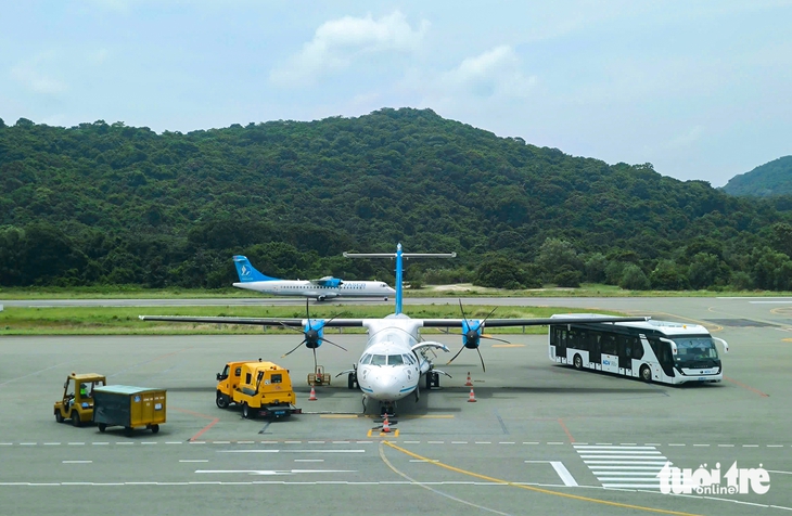 Hiện nay giao thông kết nối từ sân bay Cỏ Ống (ở đặc khu Côn Đảo) về khu vực trung tâm chỉ có duy nhất một tuyến đường độc đạo với 2 làn xe - Ảnh: CHÂU TUẤN