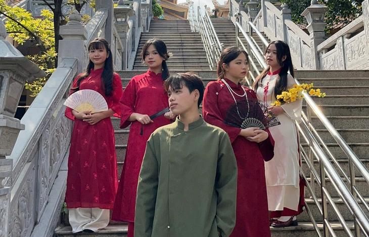 Nhóm sinh viên trong bộ ảnh chào Tết - Ảnh: HOÀI ANH