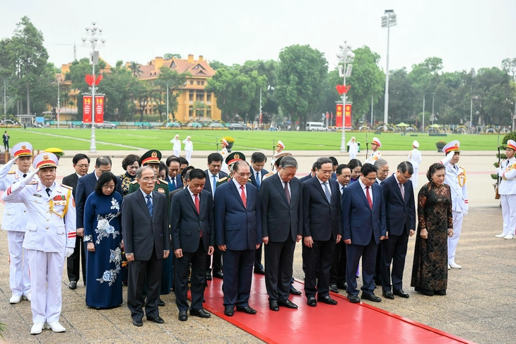 Đoàn lãnh đạo, nguyên lãnh đạo Đảng, Nhà nước vào lăng viếng Chủ tịch Hồ Chí Minh - Ảnh: MINH CHÂU