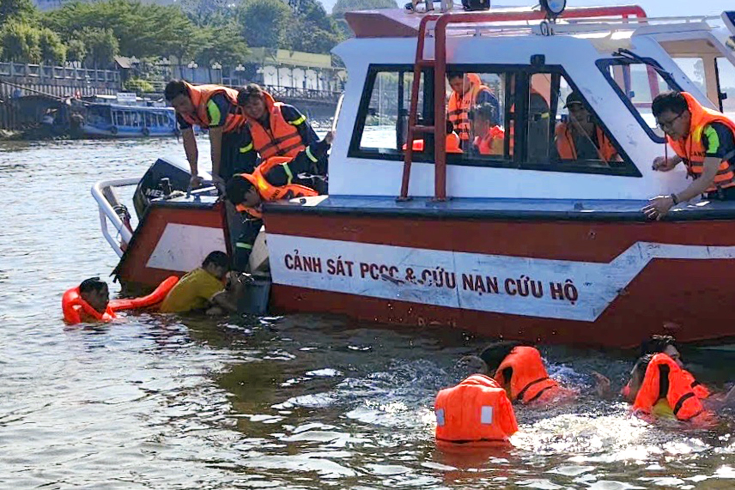 Phát hiện vụ việc, lực lượng phòng cháy, chữa cháy và cứu nạn, cứu hộ trên sông phối hợp cảnh sát giao thông đường thủy nhanh chóng có mặt giải cứu toàn bộ vận động viên gặp nạn.