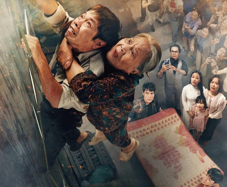 Poster mới của phim là khoảnh khắc ông Hùng (Thái Hòa) nỗ lực giải cứu một bà cụ (NSƯT Lê Thiện) khỏi đám cháy. Bên dưới, đám đông bu nghẹt kín và hướng điện thoại quay lại hành động nghĩa hiệp của ông Hùng. Dưới sân, Tuấn (Võ Tấn Phát) và Vinh (Đoàn Thế Vinh) giăng sẵn tấm chiếu để hỗ trợ họ.