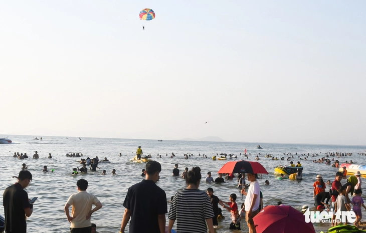 Ngoài ra mọi người vui thích trải nghiệm nhiều hoạt động thể thao và chơi trò chơi trên biển như kéo phao chuối, kéo dù lượn...