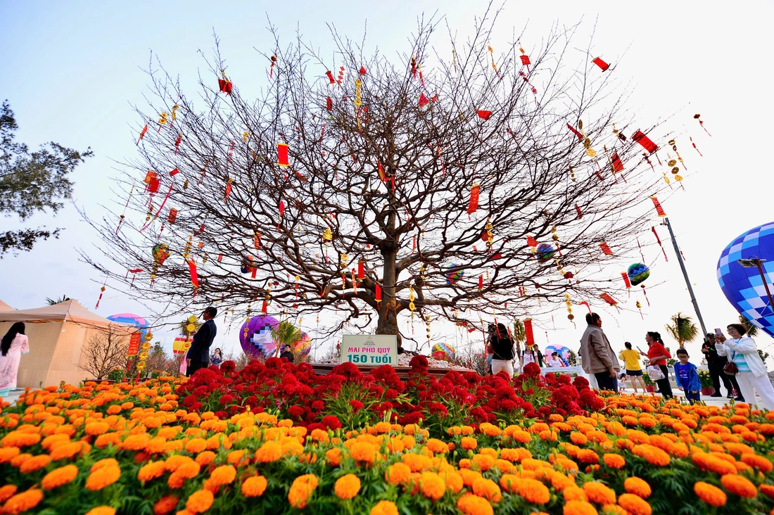 Tại khu vực lễ hội hoa xuân, rất đông du khách đến ngắm cây mai Phú Quý cổ 150 tuổi được vận chuyển trực tiếp từ An Giang. Đây là cây mai vàng cổ lớn nhất khu vực miền Tây Nam Bộ tính đến thời điểm hiện tại. Cây mai lớn, khoe hàng ngàn nụ hoa, hứa hẹn vài ngày nữa sẽ bung thành thảm vàng rực.