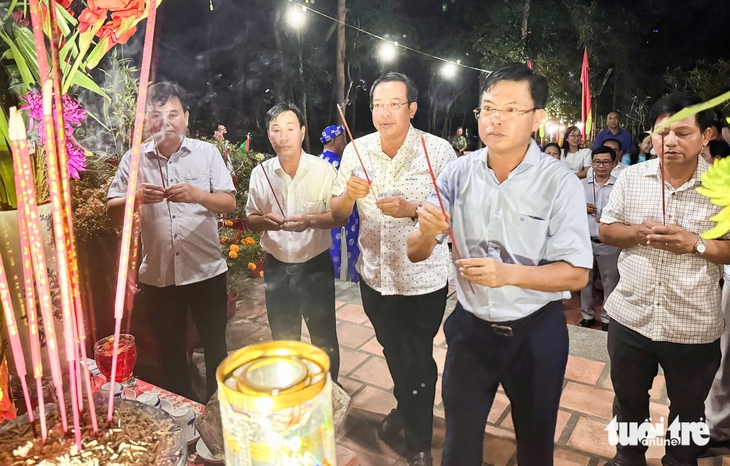 Ông Nguyễn Lưu Trung - Bí thư Đảng ủy phường Hà Tiên - cùng người dân viếng mộ Mạc Cửu và làm lễ tế trời tại nền Sơn Xuyên cầu quốc thái dân an - Ảnh: HỒNG ĐIỆP
