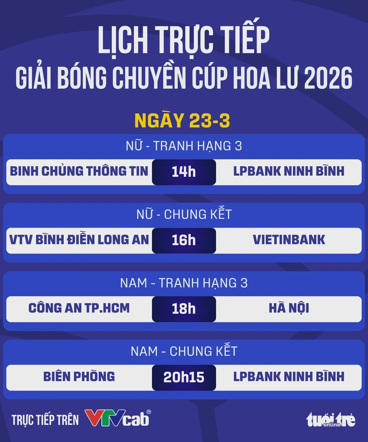 Lịch trực tiếp Cúp Hoa Lư ngày 23-3 - Đồ họa: AN BÌNH
