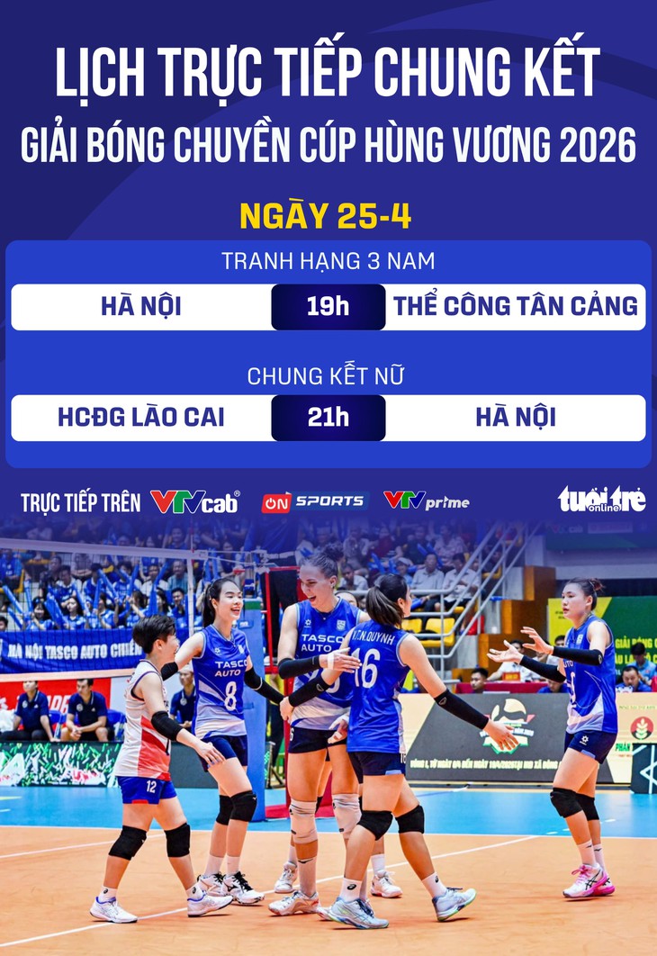 Lịch trực tiếp Giải bóng chuyền Cúp Hùng Vương ngày 25-4 - Đồ họa: AN BÌNH