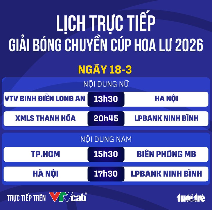 Lịch trực tiếp Giải bóng chuyền Cúp Hoa Lư 2026 ngày 18-3 - Đồ họa: AN BÌNH