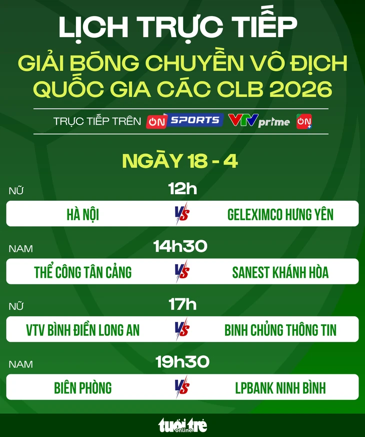 Lịch trực tiếp Giải bóng chuyền vô địch quốc gia ngày 18-4 - Đồ họa: AN BÌNH