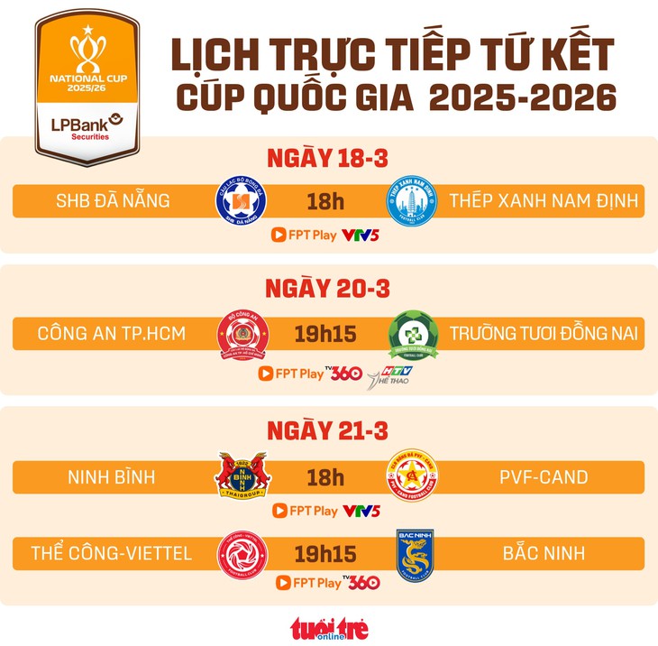 Lịch trực tiếp tứ kết Cúp quốc gia: CLB Công An TP.HCM đấu Trường Tươi Đồng Nai - Đồ họa: AN BÌNH