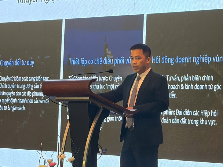 Phát biểu phân tích tại diễn đàn, ông Đậu Anh Tuấn, Phó tổng thư ký, Trưởng ban Pháp chế VCCI, cho biết vùng kinh tế trọng điểm phía Nam hiện được xác định gồm 4 địa phương: TP.HCM, Đồng Nai, Tây Ninh và Lâm Đồng. Theo ông Tuấn, vai trò của các địa phương trong vùng không mang tính cạnh tranh, mà bổ trợ lẫn nhau trong tổng thể phát triển kinh tế vùng.