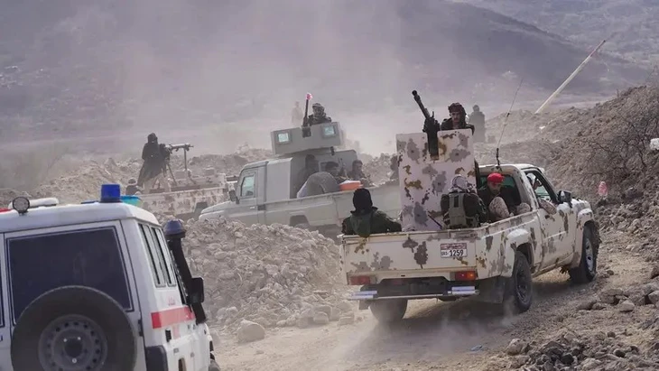 Các tay súng thuộc Hội đồng Chuyển tiếp miền Nam (STC) tiến vào tỉnh Abyan, miền Nam Yemen, ngày 15-12-2025 - Ảnh: REUTERS