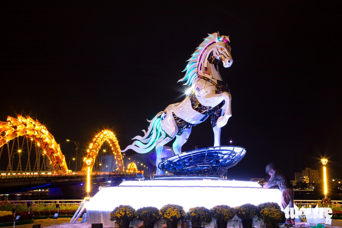 "Kim mã 4.0" được đặt ở khu vực sàn cảnh quan phía nam cầu Rồng (TP Đà Nẵng). Nhiều người nhận định chú ngựa này có thể trở thành một trong những linh vật nổi bật nhất mùa Tết năm nay, tạo điểm nhấn mới cho không gian trung tâm thành phố.